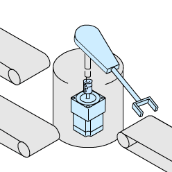 4、生产流水线上,机械手正完成快速准确的抓取工序。